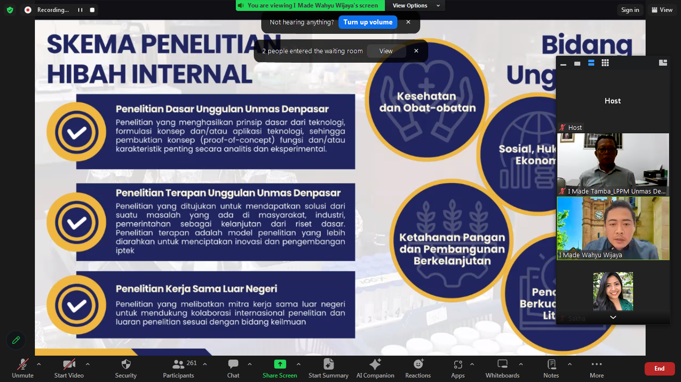 Pada tanggal 23 Februari 2026 Universitas Mahasaraswati (Unmas) Denpasar menggelar kegiatan Launching dan Sosialisasi Panduan serta Penyegaran Kinerja Dosen Tetap sebagai langkah strategis dalam meningkatkan kualitas akademik dan profesionalisme tenaga pendidik. Acara ini bertujuan untuk mensosialisasikan panduan terbaru penelitian dan PkM Hibah Internal Unmas Denpasar 2026 serta panduan insentif Unmas Denpasar tahun 2026. Program Insentif yang dimiliki Unmas Denpasar meliputi Program Insentif Publikasi Ilmiah (PRESTASI), Program Insentif Buku Ajar (PIJAR), Program Insentif Invensi dan Produk Inovasi, serta Program Insentif Pengelola Jurnal Ilmiah (INSAN). Selain itu, pada kegiatan ini disosialisasikan kembali terkait optimasi kinerja dosen tetap Unmas Denpasar melalui platform SINTA, SITASI, dan BIMA. Kegiatan ini bertujuan untuk memberikan penyegaran terhadap pelaporan kinerja akademik yang harus dipenuhi sesuai standar institusi dan regulasi nasional. Kegiatan ini dihadiri oleh jajaran pimpinan universitas, dekan dan direktur, serta dosen tetap di Unmas Denpasar. Dengan adanya sosialisasi ini, Unmas Denpasar berkomitmen untuk terus mendorong dosen dalam menciptakan suasana akademik yang inovatif, produktif, dan bermanfaat bagi masyarakat